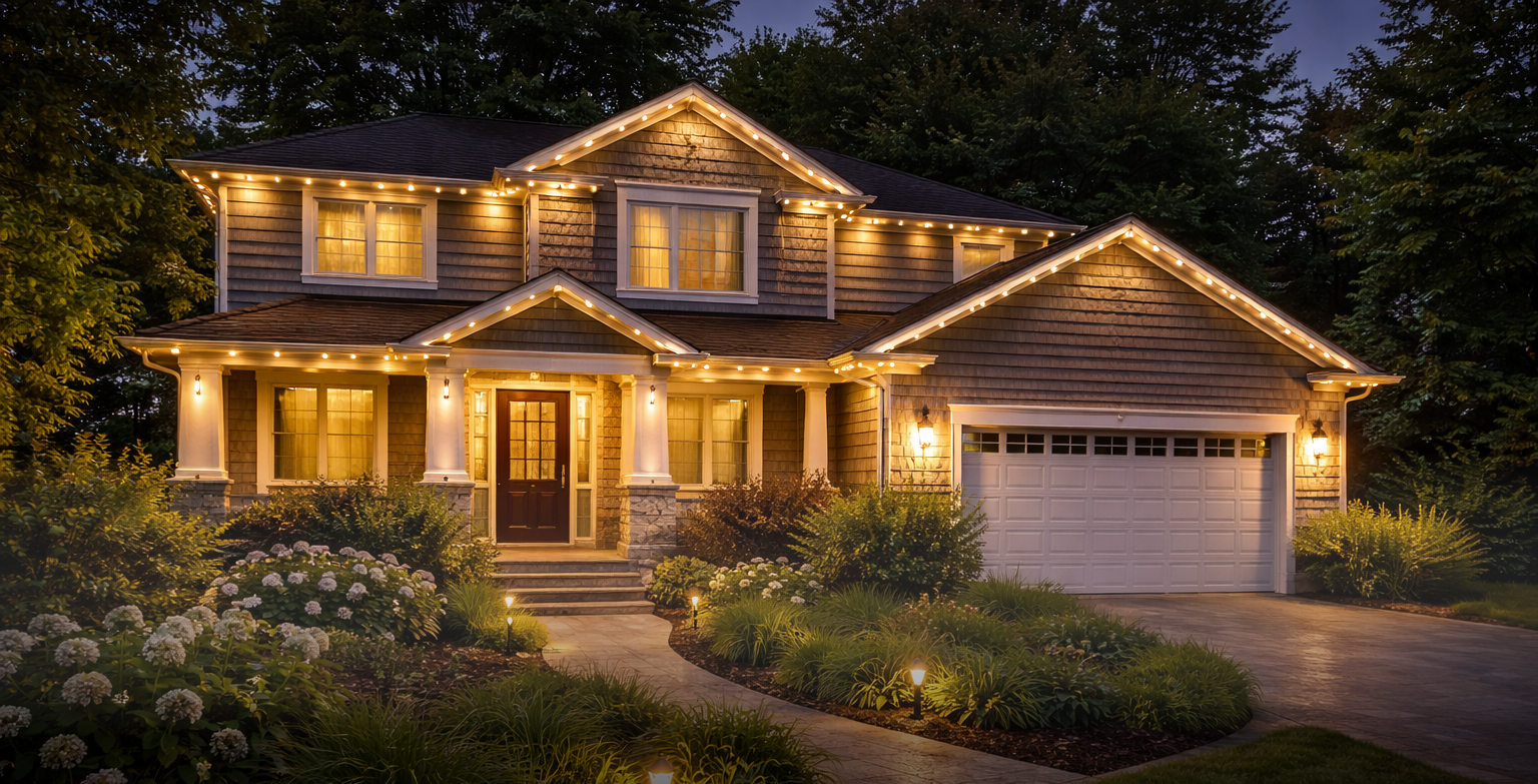 At Clear Ascent Home Solutions, we believe your property should look its best after dark. Our permanent outdoor lighting systems are custom-designed to highlight your home’s architecture, elevate curb appeal, and improve safety and visibility—year-round, with clean, professional installation and long-term reliability.